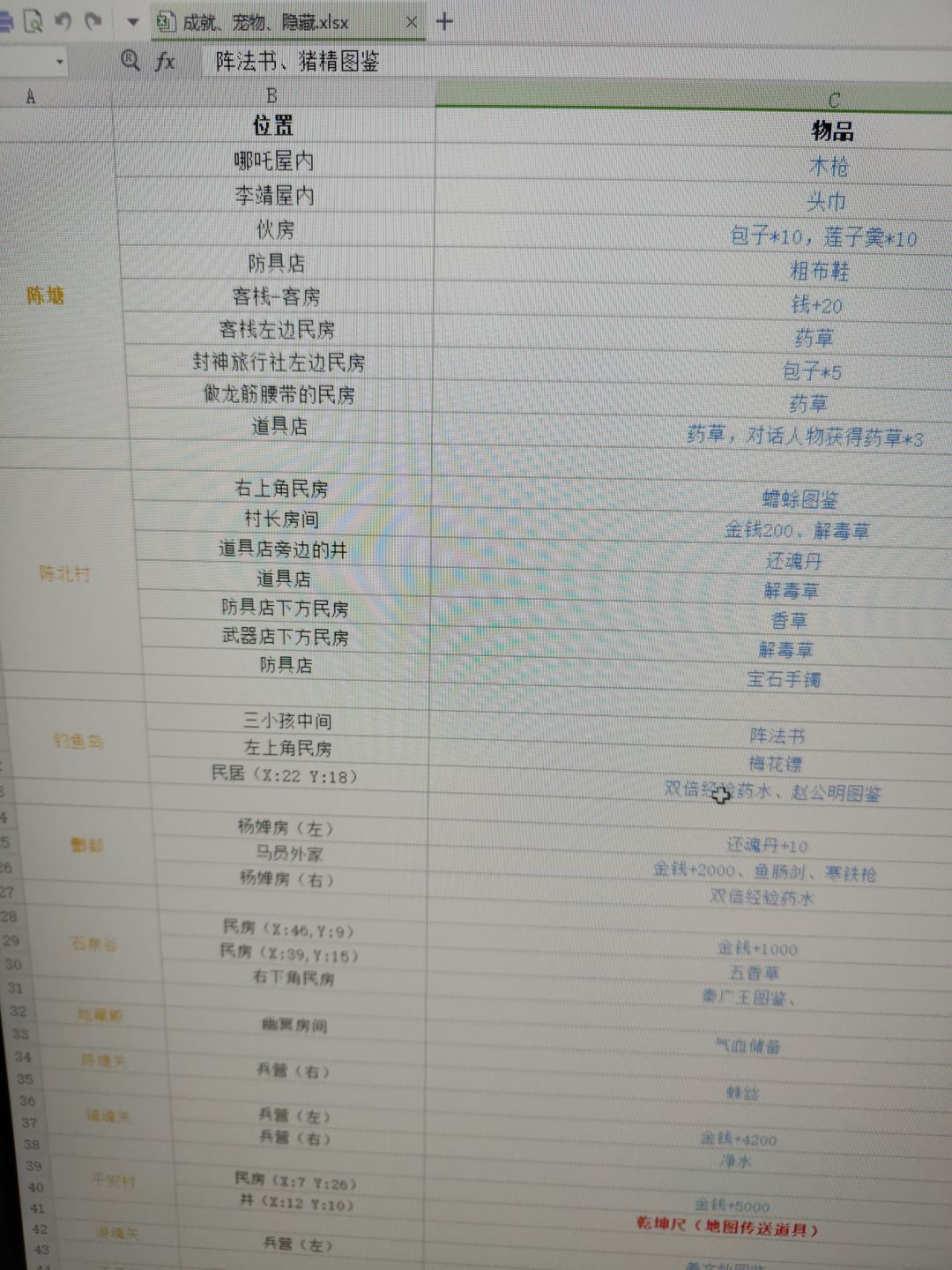 隐藏物品位置