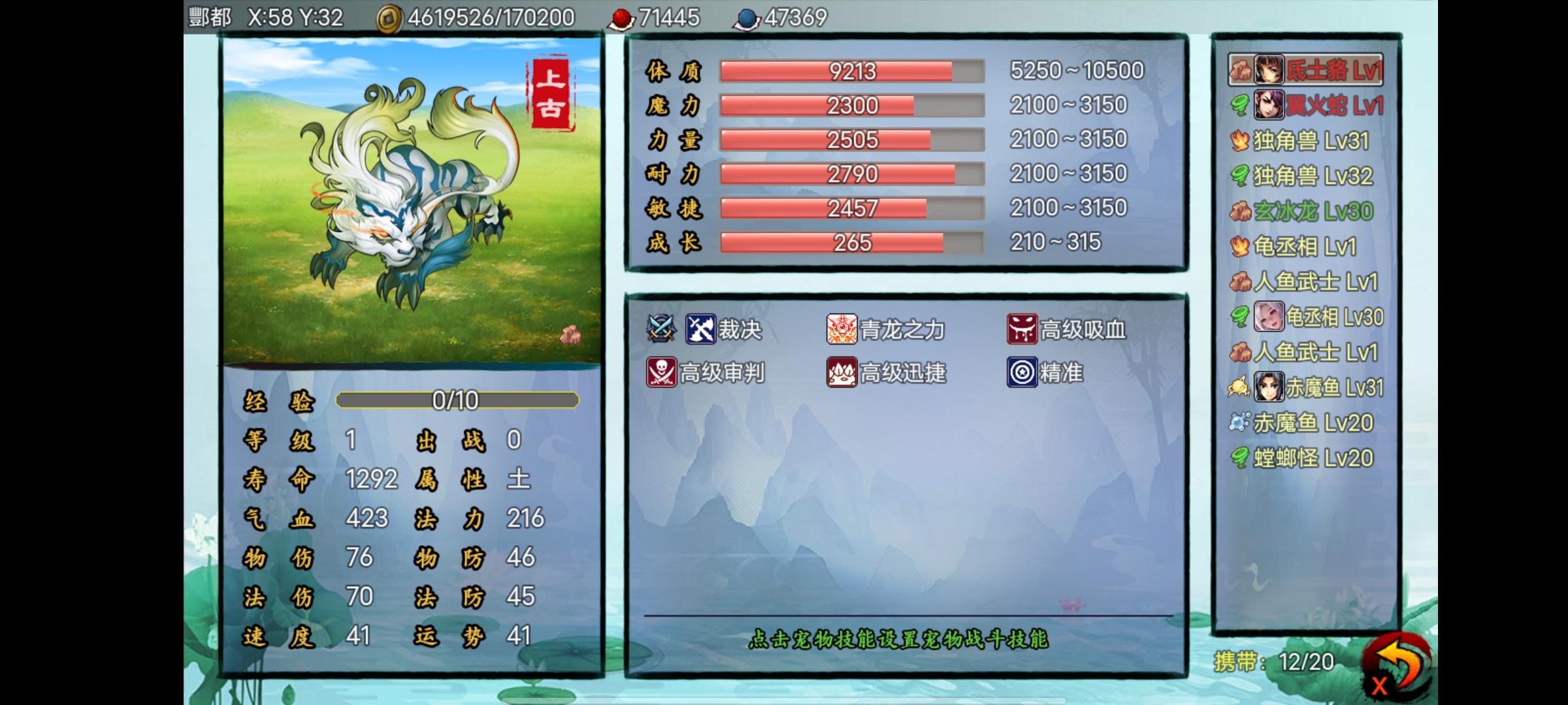游戏很不错,玩的时候有几点需要注意。 1.游戏一步一阶段,有等级限制,不能像其他游戏一样刷高等级打主线。 2.宠物要抓神话,除了上古好像都可以用归元丹洗资质,技能。归元丹抓鬼掉或者去商户买 3.网络版合宠和打技能都是线上保存的,不能sl。 4.宠物有出战等级限制,主角到达了宠物出战等级才能用宠物(不能找大佬买超前的强力宠物了),宠物只能在主角+-5级才能出战。 5.抓鬼会随机掉落各种东西,出地狱后