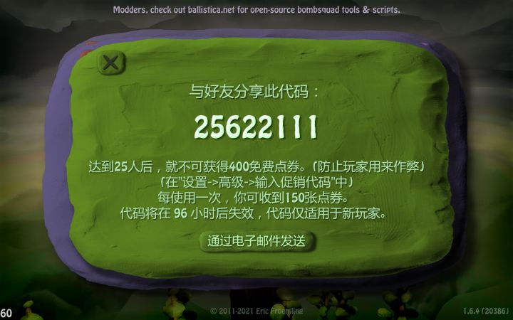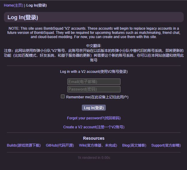 炸弹小分队新官网:账号登录界面:V2可能指的是Bombsquad Version 2.0(炸弹小分队2.0)账号注册界面:注册信息填写完毕后会在你填写的邮箱里找到一封类似邮件,点击Activate完成注册,之后你的账号就可以在官网进行登录了正常登录完毕后的界面:账号设置界面:工作区设置界面(目前同步工作区文件选线只有关闭,可能还没做完):资源包前端及功能目前还未完成,翻译界面也就不