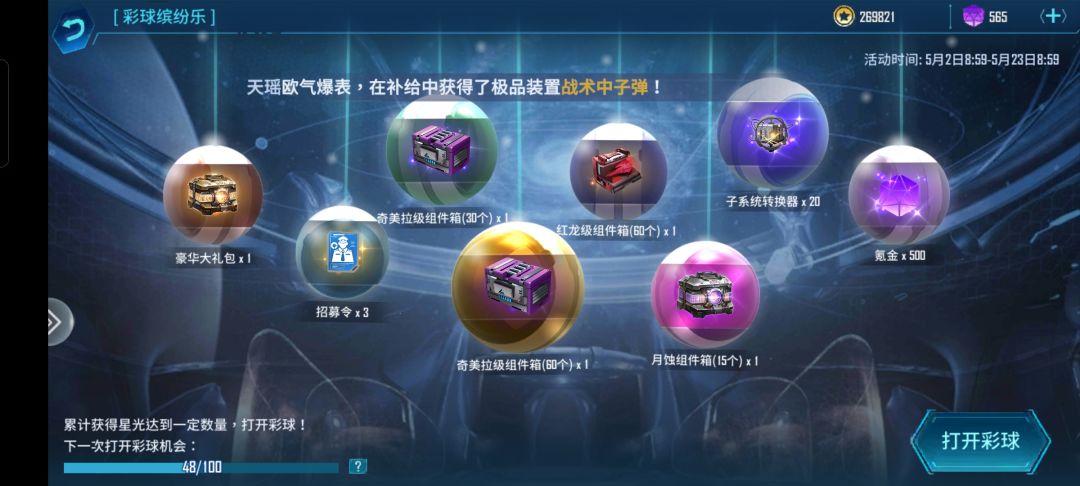 awa,awa,awa 纯个人意见,别喷就行qnq 首先,活动:彩球 活动道具获取渠道: 1 挖矿,一天上限120,总计120×22=2640 2 每日礼包(六元),一天一个100,全买满的前提下可获得2200个 3 花氪金,每花10氪金给一个,上限8000 活动奖励:红龙(没什么用,一定要玩流星红龙当我没说),奇美拉(新驱逐,未来可期),月蚀碎片(这东西就不劳烦您开小号搞了,反正送不了了),月蚀