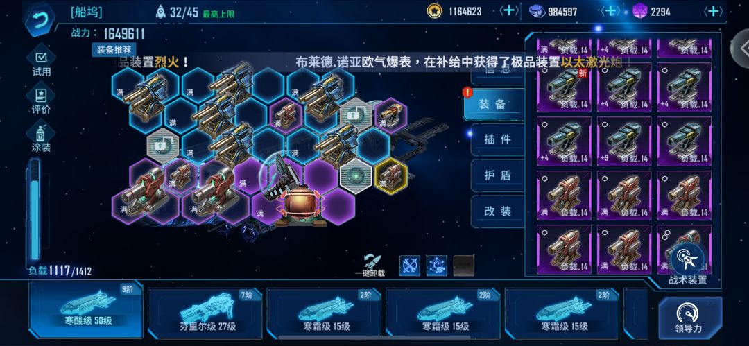 刚看了小银灯的新萌攻略,觉得也该给一些新萌说一些武器装置的作用,能少走弯路。直入主题。 一,弹射武器 加农炮,开始就送的炮,就打一串子弹出去,在前期校准率不高的情况下,几乎打不中敌人,没用。但到后期有了巨兽,三阶金色加农炮6.5秒冷却,配合冷却弹射插件,能更快的输出,巨兽上一船这么个金加农走得是另一条路线。 高斯炮,高暴击率的弹射炮,蓝色的没用,有人实在没办法上紫色的,最好有金色的,金色也不难出,