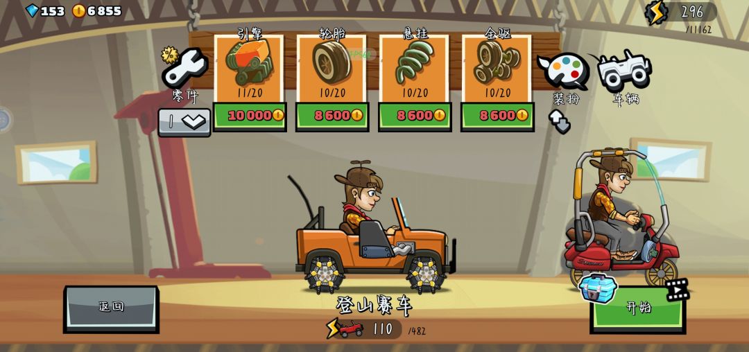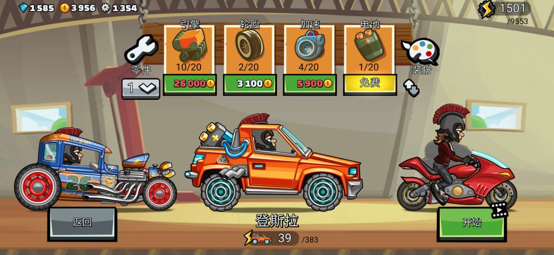 登山赛车,小轮摩托:83.28w金币 巴士,登山赛车Mk2,拖拉机:108w金币 沙丘越野车,越野摩托车,跑车,单轮车:133.76w金币 月球车,哈雷摩托,坦克,雪地摩托,怪物卡车:158.16w金币 翻斗车,超级柴油车:252.8w金币 拉力赛车,岩石弹跳着,野兽,跳跳车:308.84w金币 热棒飞车,登斯拉,肌肉车,竞速卡车,方程式赛车,超级摩托车,超级跑车:419.2w金币