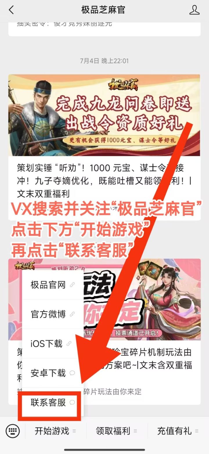 各位官老爷好,今日游戏更新后,TapTap包体服务器由H5服转为渠道服,因此会出现老用户更新游戏包后找不到之前游戏角色的情况,遇到此问题麻烦联系游戏客服解决。给您游戏带来的不便深感歉意,感谢官老爷对我们的支持与陪伴客服联系方式:公众号《极品芝麻官》,如图所示↓↓↓#极品芝麻官