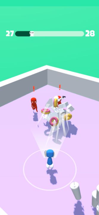 Move around, collect various objects and blast them into enemies. Make sure to dodge the bullets and get rid of the melee enemy!