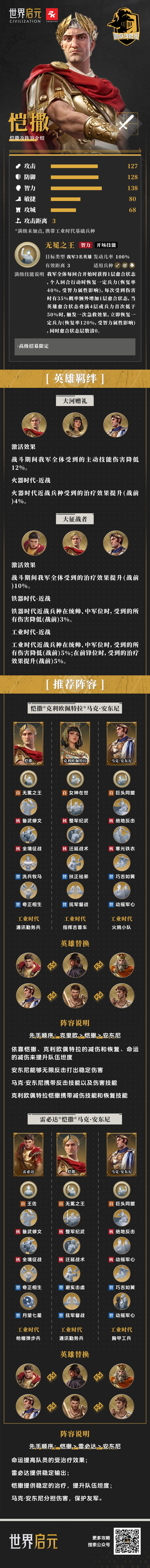 【英雄百科】恺撒详解及适配阵容(一图流)