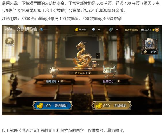 大家好!今天我们为大家带来关于游戏《世界启元》中氪金的推荐,大家肯定是希望花最少的钱获得最大的收益。那么什么氪金项目是值得出手的,什么项目是推荐给有特定喜好的,接下来就给大家讲解一下。 通用优先推荐 超值推荐中的内容很多,其中文明的赠礼、典藏月卡和穆兰辞是大家在有意投资的情况下强烈建议先考虑购买的。#攻略
