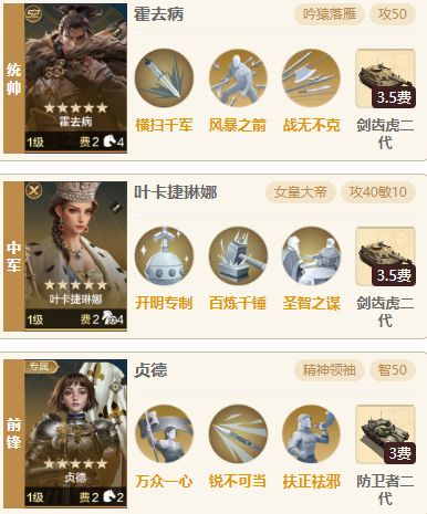 天下恐孔子已久,现叶卡捷琳娜还能有一战之力。叶卡捷琳娜有着超强的驱散效果可以驱散掉肉队的战时增益效果,但有时候不能全部驱散但搭配汉武帝后基本可以驱散掉敌方的所有战时增益效果,例如护盾,还有治兵振旅的减伤效果,亦或者恺撒自带技能的愈合效果,且叶卡捷琳娜的自带技能伤害不低的搭配汉武帝还能再打一波伤害非常强力。 注意:队伍虽然克制效果但如果造价过于平民还是无法单吃敌方有概率被打爆,红度越高越好 一、 阵