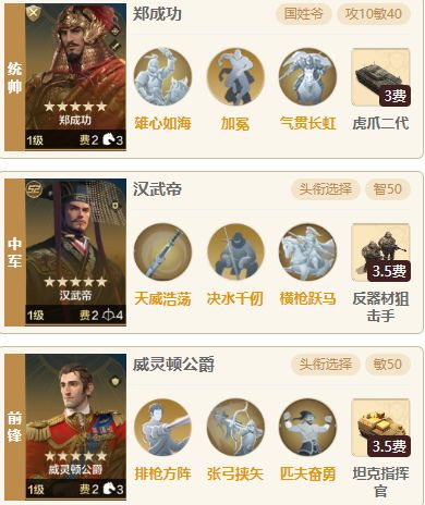 没有秦始皇的可以尝试一下这个队伍。郑成功拥有着非常高的追击技能发动率搭配气贯长虹十分强力队伍增伤足够无需满载负荷,常常都是0回合直接把对面砍翻。虽然郑成功的追击发动率是和攻击挂钩的,但发动率到一定的数值就够了而且队伍增伤足够了所以郑成功需要拉高敏捷率先出手,敏捷和攻击的比值是4:1这样面对有着威灵顿的队伍也可以率先先出手 注意:队伍害怕恺撒队伍和携带制敌的队伍,打肉队基本都是无法撼动缺少禁疗和驱散