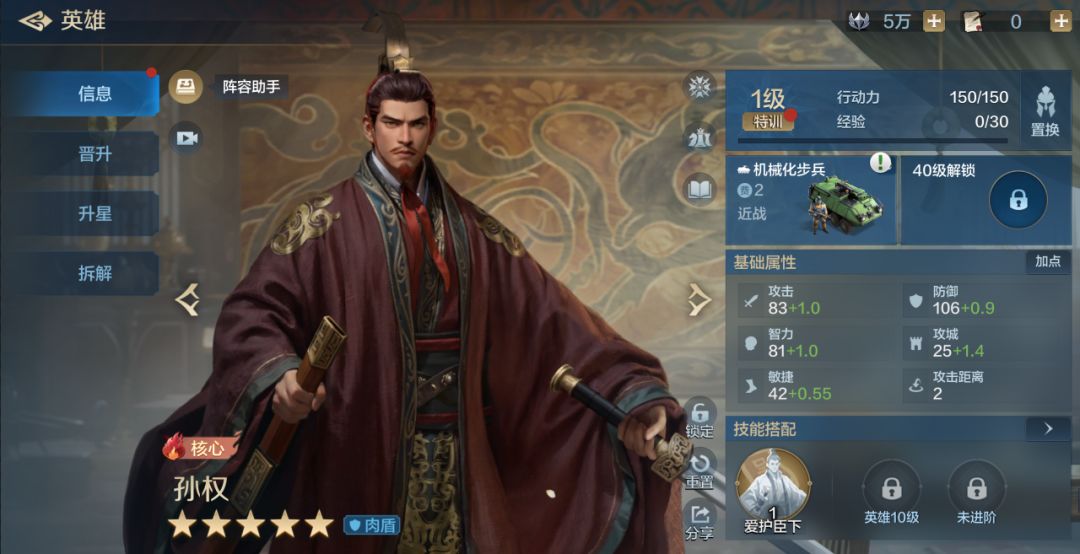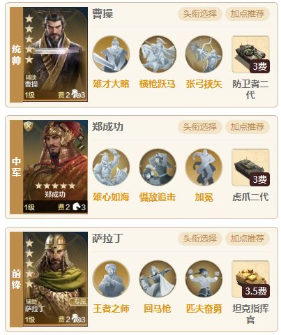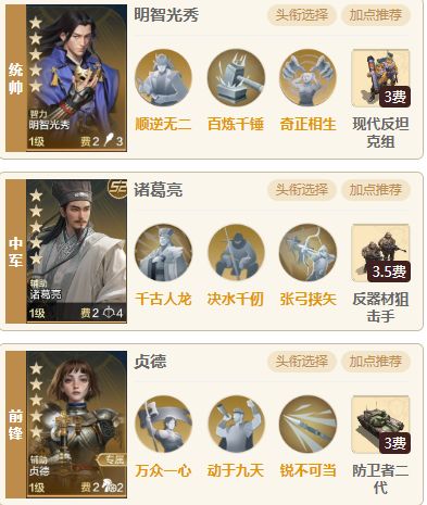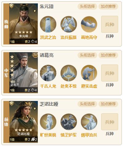 队伍相比武则天和大头恺撒来说获取难度较低一点,一般玩满6个赛季且有充值月卡的玩家要凑一套这个阵容难度并不会很高,虽然需要两个璀璨技能,但是治兵振旅可以用其他治疗技能替代,阵容强度不错,肉队里面除了也是带芝诺的,遇到其他有高红度的肉队是可以单吃的。 一、 阵容介绍 1.组队思路:统帅孙武、中军刘备,前锋芝诺比娅,刘备可以用来替代恺撒,刘备不止有奶量还有属性提升,在一些特殊情况下队伍阵容的提升还可能