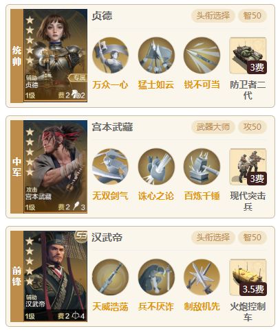 无限纪元也到了尾声,马上进入结算阶段,在刷战功的时候也科研了不少黑科技阵容,今天就为大家推荐一个宫本武藏的黑科技控制队,由贞德、宫本武藏、汉武帝组成,宫本武藏现在不仅可以延长控制还可以上负伤状态,对没有控制效果的目标施加控制。 这队可以将朱元璋放出来去给诸虞体系组“双朱队”,并且经过测试这队在实战中也有这不小的强度,贞德、宫本武藏、汉武帝正好满足猛士如云的需求,让宫本武藏可以先手控制。这队贞德汉武