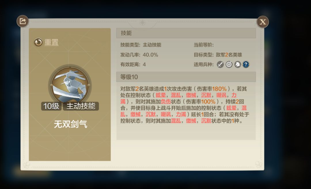 拿破仑+宫本武藏+贞德,新的主动控制队思路 宫本武藏的技能最近得到的加强,具体如下: 目前看起来这是一个很强的技能,但是在目前的测试中这个技能似乎存在着一定的不确定性。在测试中,目前没有看到无双剑气对未处于控制状态的英雄施加控制状态的例子,也没有看到对已经处于控制状态的英雄施加负伤状态的例子。至于延长控制时间偶尔能见到,但是似乎也有特殊的生效条件。 不过这并不影响这个技能的输出,可以看