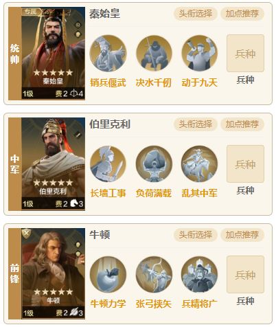 这个赛季由于璀璨技能【游刃有余】的加入使得以郑成功为首的爆头追击队胜率大不如前,而且感觉收到非常严重的暗能量影响,80%概率的【气贯长虹】经常几刀砍下去都不触发,要不就是郑成功普攻没能触发暴击从而无法获得萨拉丁的连击增益。今天就给大家带来一趟伯里克利+秦皇的变种体系,专门克制热门追击队和主动体系队。 阵容搭配 阵容思路:有秦始皇+伯里克利组成核心输出,两个英雄的自带技能都是指挥技,因此不怕各种开场