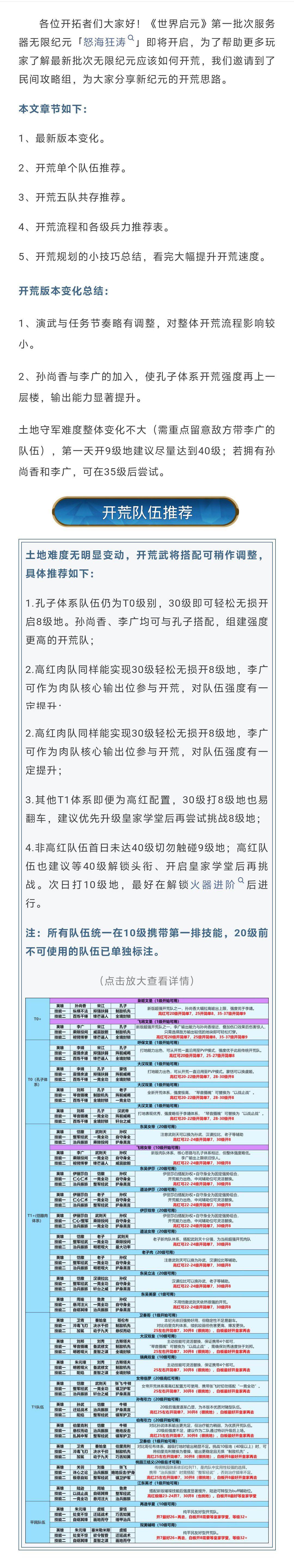 1月24日X2纪元开服在即,为了助力各位开拓者更加顺利开荒,民间攻略组为大家带来了无限纪元「怒海狂涛」的土地开荒表,让大家开荒思路更加清晰,一起来看看吧!(点击放大查看详情)(点击放大查看详情)(以上内容均为玩家观点,并不代表官方意见)#世界启元 #世界启元civilization #文明正版 #游戏安利 #发现好游戏