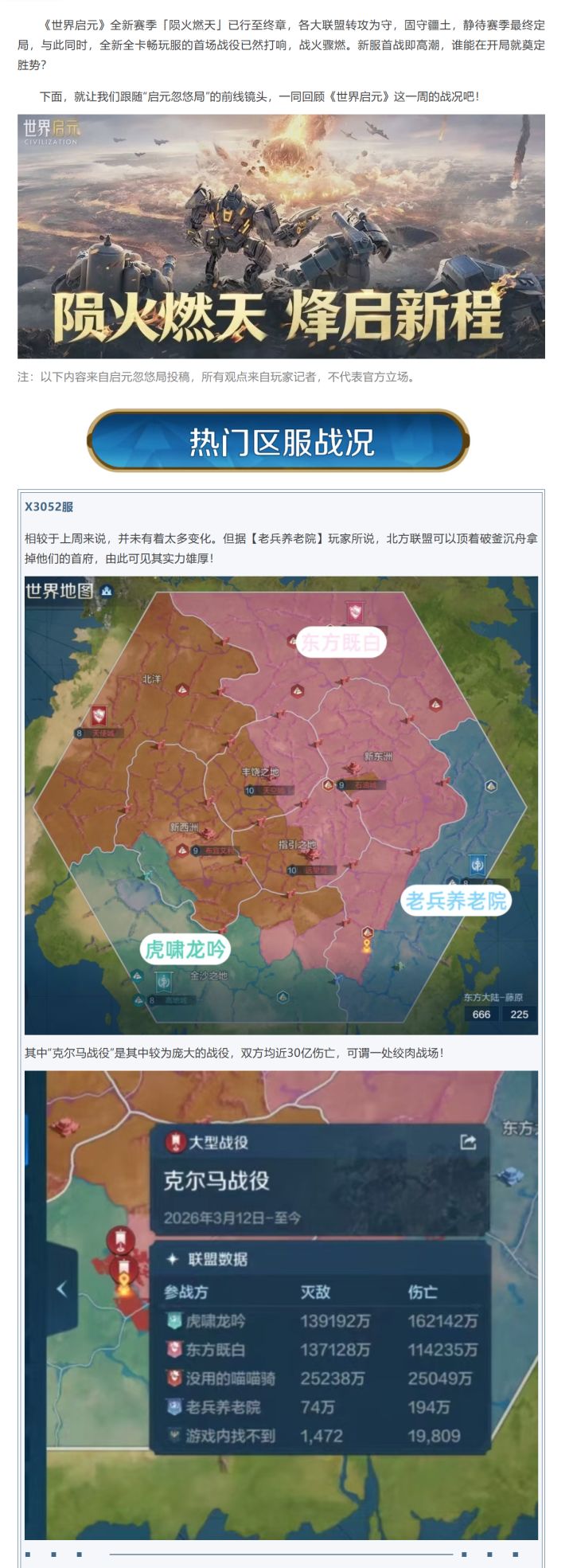 《世界启元》X3纪元「陨火燃天」第四周周报:烽烟暂歇,新章将启