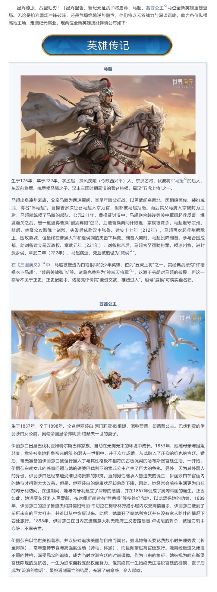 新纪元情报丨新英雄:「马超、茜茜公主」技能详情公布