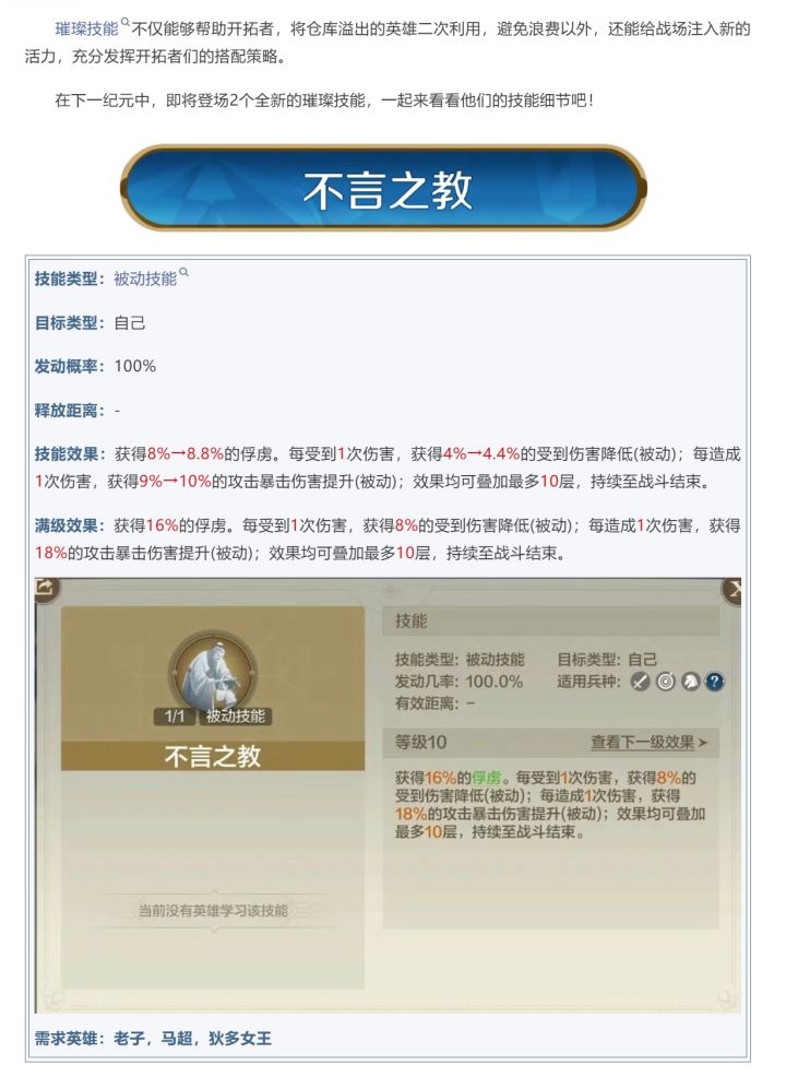 新纪元情报丨璀璨技能上新!不言之教与各擅胜场即将登场!