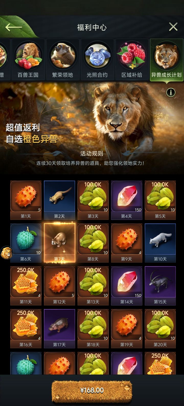 一大堆的充值168,如果可以放大到每个动物细节,就更好了。不想冲的,就慢慢肝,欣赏一下鸟语花香,大森林。音效挺好,每个动物声音。中规中矩,7分吧。