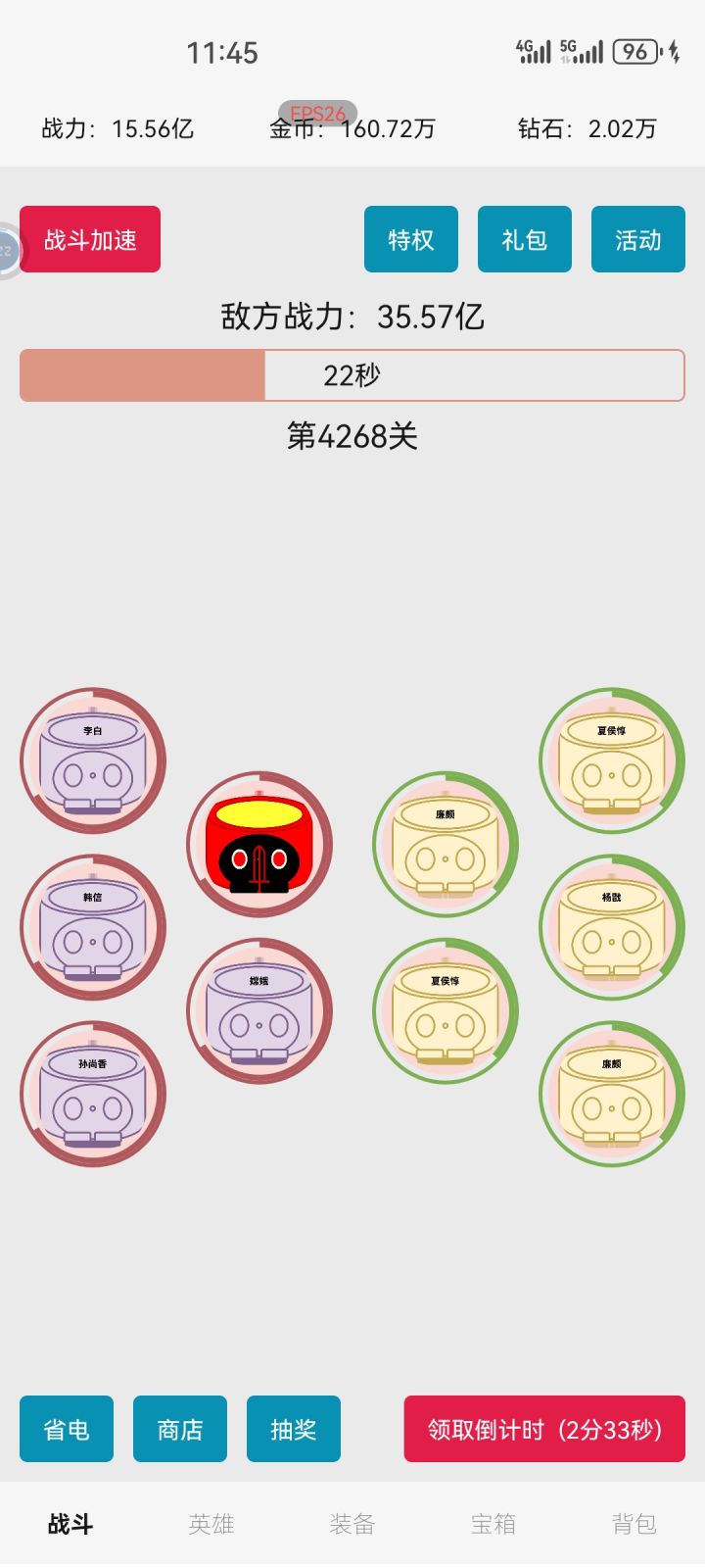 游戏玩法是抽奖获得英雄搭配闯关,刚进入游戏没有英雄需要去抽一发十连,然后上阵闯关。每闯关一关会获得金币和宝箱(有大用)