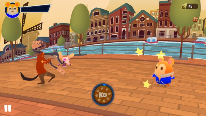 Hi,大家好,我是乌拉拉。Quick Time Event 快速反应事件,俗称QTE,其名称起源于最近新闻超多的莎木系列。这种看见什么按什么比反应的刺激玩法,经常用于许多动作游戏之中,让玩家有更好的带入感。那么今天就来介绍一款主打QTE的动作游戏:功夫小仓鼠!功夫小仓鼠是一款风格可爱的动作游戏。故事的开头,和平的小镇哈姆斯特丹被邪恶势力入侵,可爱的小仓鼠Pimm只好抡起拳头,使着