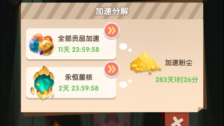 一、神奇祭坛 1️⃣祭坛供奉 祭坛下方有四个供奉品位,玩家放置贡品(目前操作不可逆,无法取消[表情_暗中观察]) 2️⃣消化时间 贡品被放置后,祭坛需要时间进行献祭。不同等级的贡品需要不同的时间去消化。(品质越高的贡品,消耗的时间越长,但获得的祭坛经验也越多[表情_+1]) 3️⃣加速消化 玩家可以使用加速粉尘来加速贡品的消化过程。(主要靠加速粉尘,不然几个贡品就得一两天才能消化)拥有一定数量的加