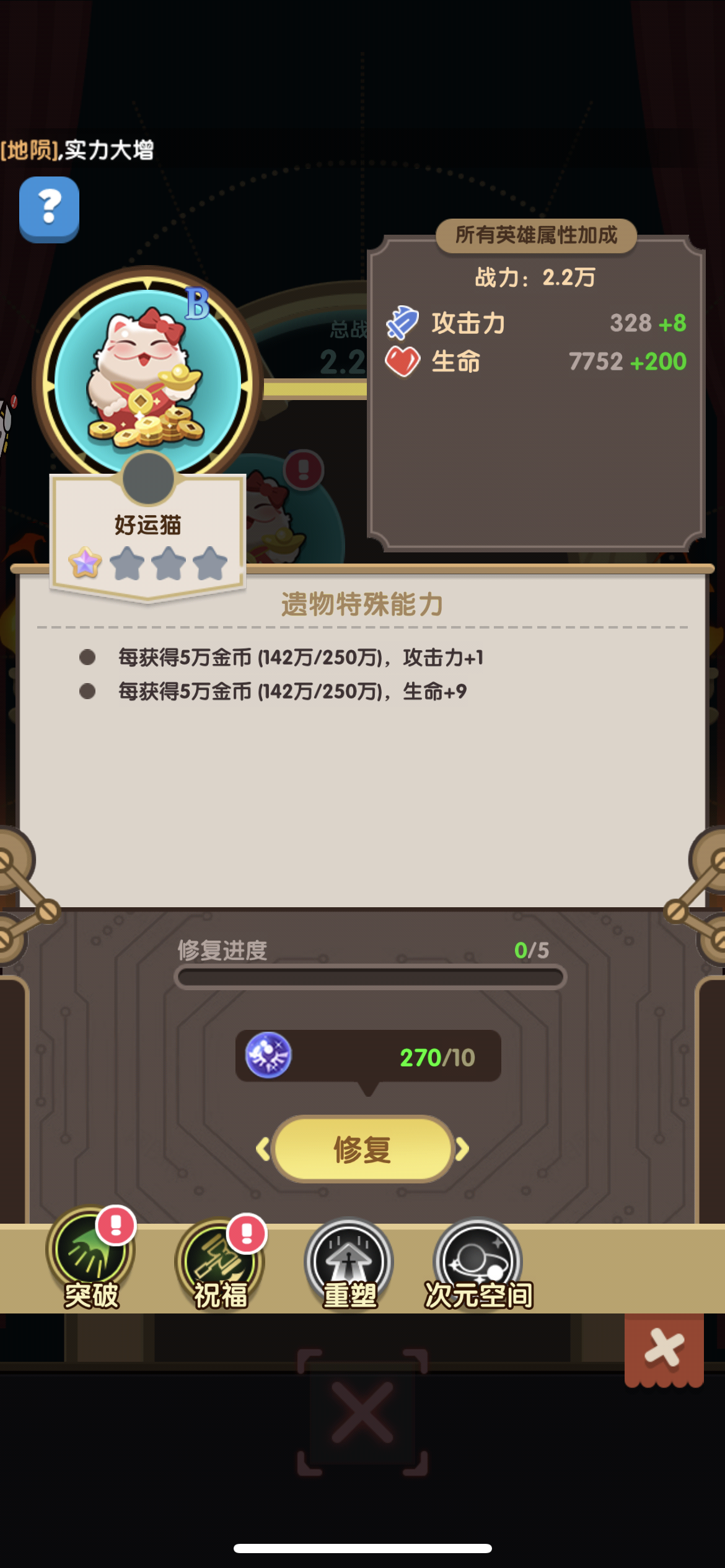 好运猫贵重品,获得金币加攻击和生命值。#巨像文明 #浅评一下