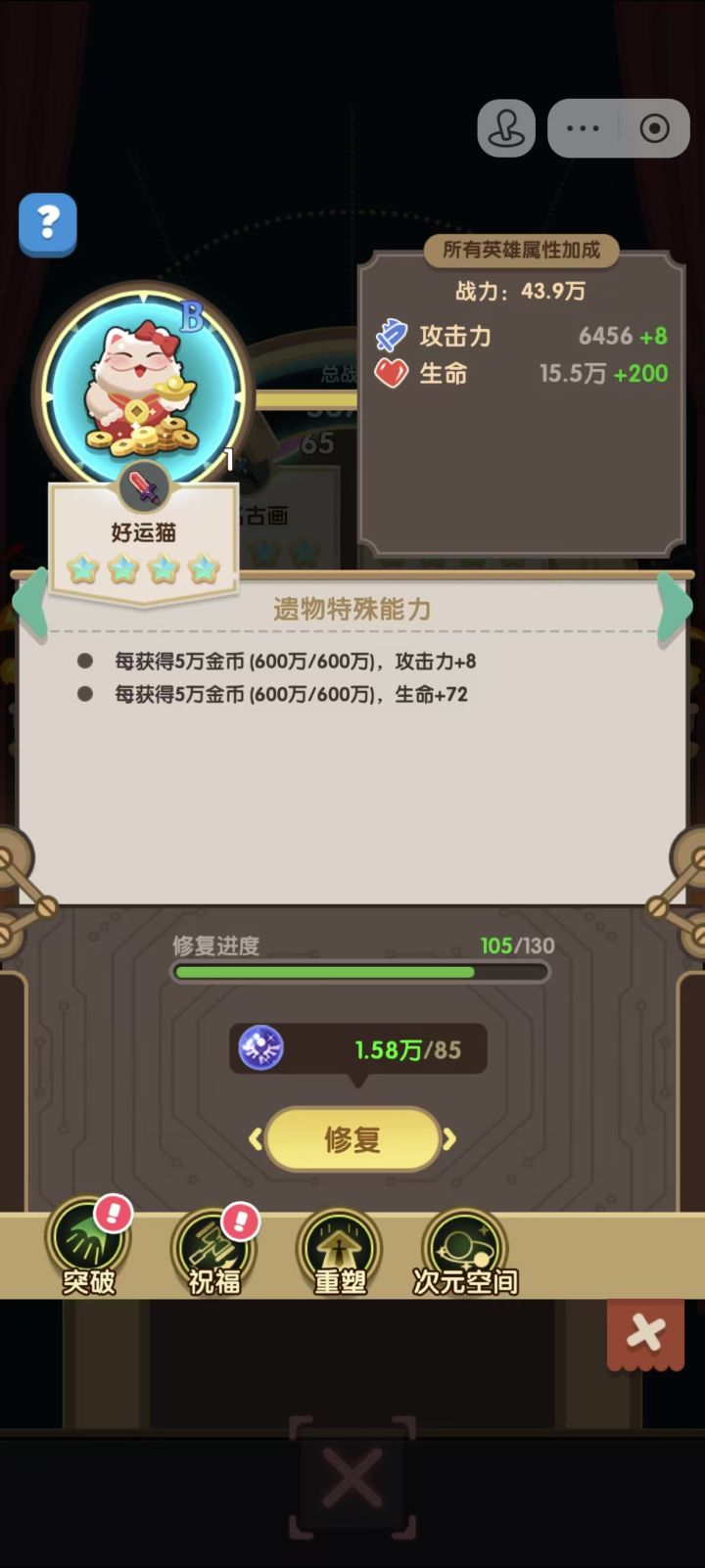 好运猫贵重品,获得金币加攻击和生命值。#巨像文明 #浅评一下