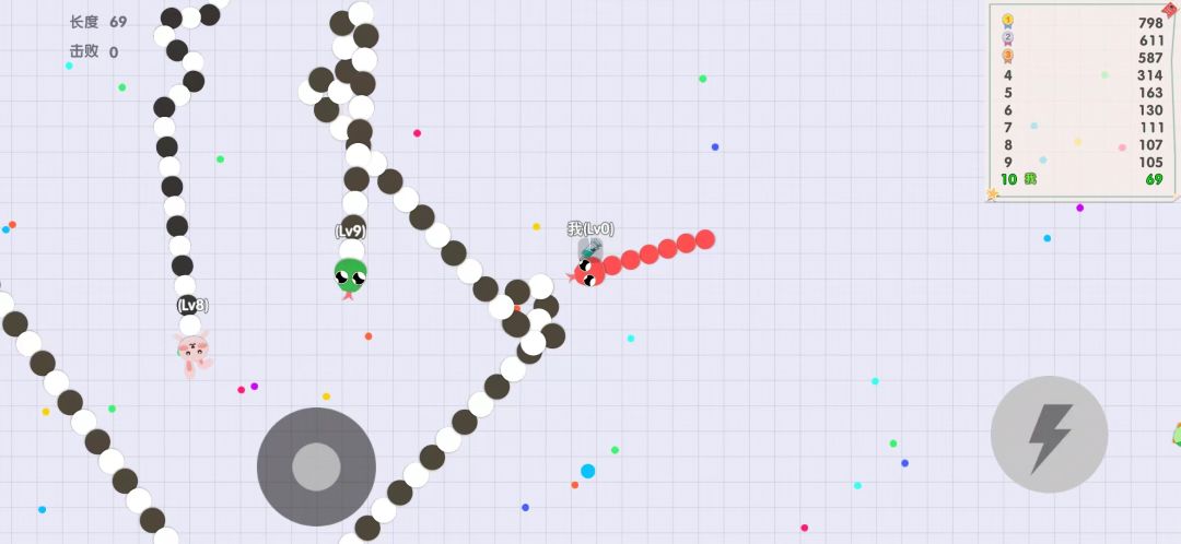 控制你的蛇,吃掉食物,变成巨大的蛇.