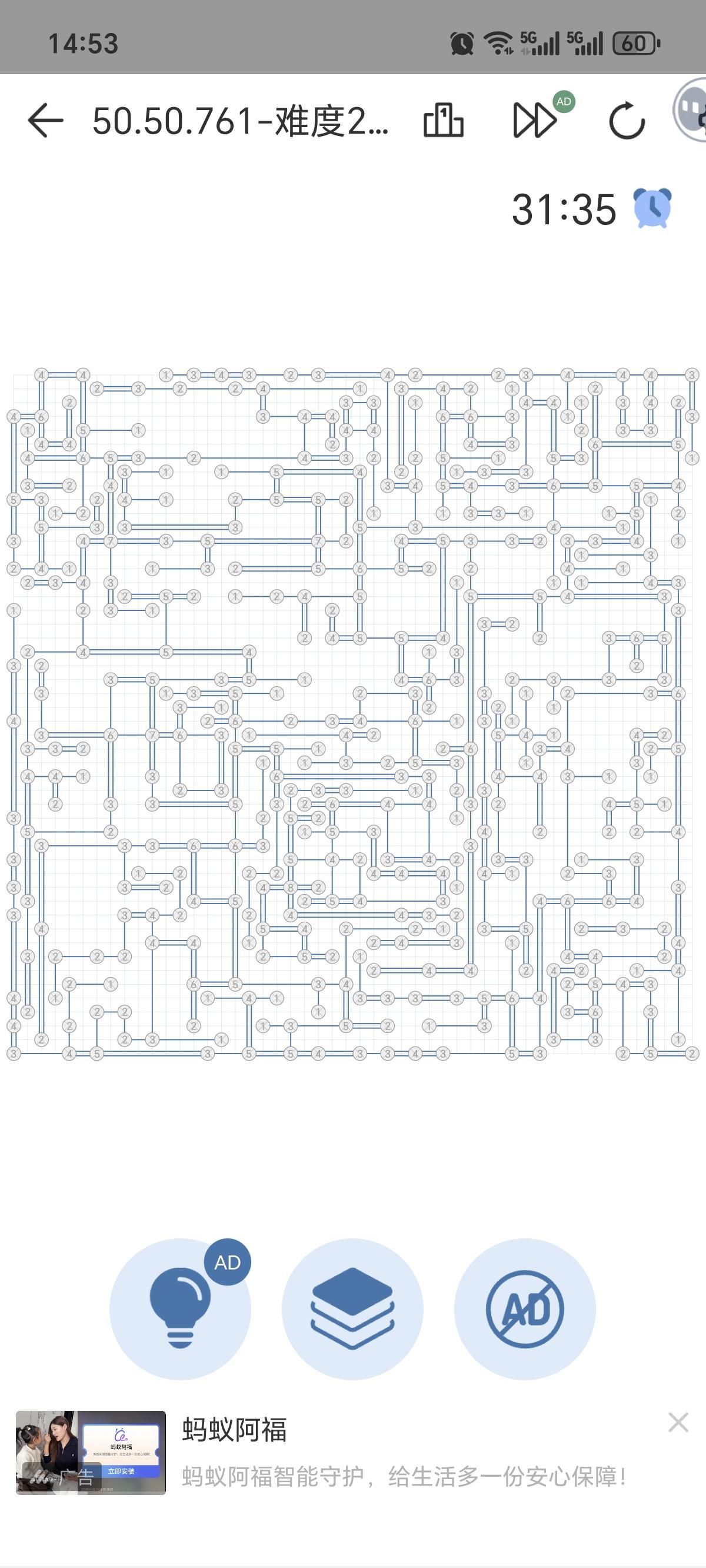 浅浅感受一下,难度不算太大。 1️⃣ 核心和数织的解法比较类似,先找唯一解。比如中心的8,边上的6,角落的4,以及其他地方有4个方向的8,3个方向的6,两个方向的4。 2️⃣ 类似的,对于满足以上要求7,5,3,可以先给每个方向上一条边。比如说4个方向的7,必然是2221的搭配,上一条边一定没错。 3️⃣ 1和1不能连接,1 2 1也不能连接。 基本上这几条下来就排除绝大多数问题了。剩下的就可以找