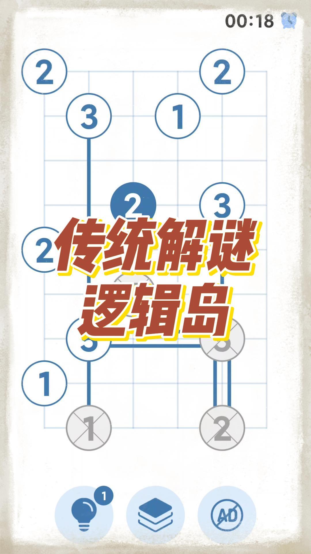 逻辑岛玩法为Hashi wo Kakero(日语 橋をかけろ,意为建造桥梁、搭桥,简称Hashi),游戏规则为数字代表岛屿,玩家在岛屿之间搭桥,最终要符合以下要求 只能竖直或者水平方向上搭桥 桥不能相交 一对岛屿之间最多只能搭两座桥 岛屿上数字与连向该岛屿的桥数量一致 所有岛屿之间必须直接或间接相连(即从任意一个岛屿,可通过桥前往任意的另一个岛屿) 因为这些限制,可以得出不少规律(注意:不是完全依