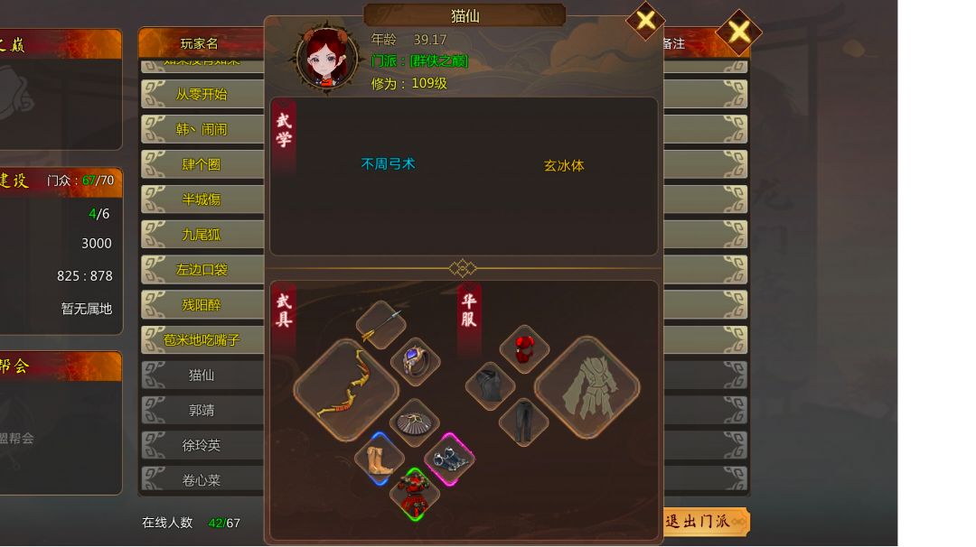 群侠传萌新起号攻略抖音猫猫游戏优化版: 武功排序:自创武功>绝世武功>偷师武功>基础武功 1.进入中原地图之后一测创建角色就送900万铜币如果用完,没铜币了游戏里随便找个人帮自己倒铜币,创建角色就送900万然后交易给自己大号,打开中原地图找到锦衣卫萧墨把所有地一层武功全部买了。 2.然后找老板娘去买330个金元(金元10000铜币一个)然后找锻造师牛妹 把背包里的(家传戒指)取下升级成 侠客戒指,