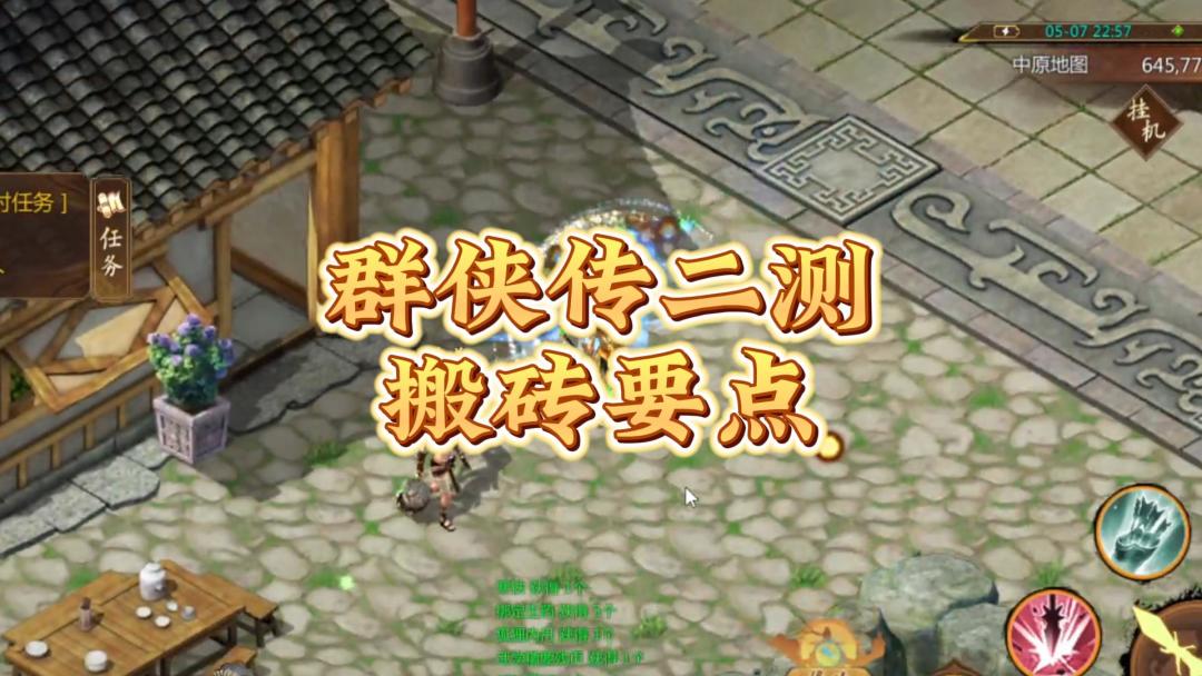 一个视频告诉你群侠传手游搬砖的两个重要砖点, 让你在开区就能赚到第一桶金 第一个,遗落的宝盒, 宝盒会随机刷新在地图的任意位置,开启宝盒会随机获得东瀛密信、肮脏的珠子、武学精要残页、风铃旋、灵动八方和金元如果你在溜达的时候遇到了可千万别错过 第二个,疯狂的僧人,一样也会随机刷新在地图的任意位置,击杀僧人会随机获得、武学精要残卷、魔核、男女黄龙弓服 其中最重要的就是武学精要残页,绝世自创武功必须材料