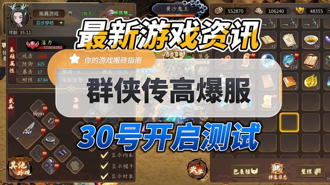 最新游戏资讯,千年群侠传高爆服30号测试