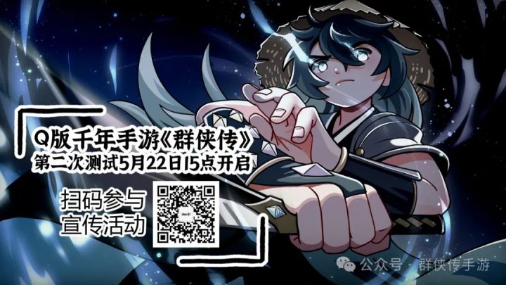 亲爱的侠士们: 《群侠传》手游第二次删档测试将于5月22日15:00开启!本次测试为不限量测试!主要内容以测试游戏功能为主,包括但不限于青丘窟(新副本)、门派战(领地争夺)、随机副本(1-5人随机本)、部分活动(滚石、攻城、比武、押镖等)、ipad版本专属安装包、数值平衡等内容(具体更新细节将在开服前整理公布)。官方诚心邀请大家一同寻找游戏中不合理的玩法和问题,由衷的希望各位侠士会喜欢《群侠传》