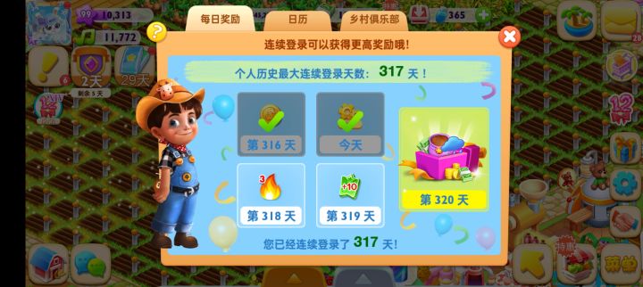 刚62天签到,这是第二次入坑了。回想第一次玩还是13年,吐槽下那时的动物模型,还有收获农作物一个一个点hhh。但是这些并不影响天天农场全球风靡一百多个国家,霸各种榜。如今再次回归游戏让我感到这款游戏玩法已经很多了,并且十分成熟,希望出现契机让天天农场再次重回模拟经营游戏王座,这是最好玩最有趣的农场游戏,没有之一。第一个账号FACCMRX纪念一下美好回忆,现在的新号FANDHEL欢迎各位来我的农场浇水。签到天数和游戏时长均为实际数据hhhh