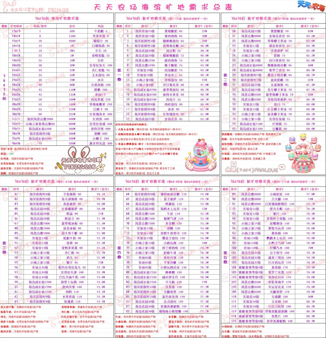 天天农场海滨扩地需求总表