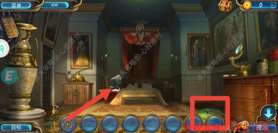 攻略作者:迷失攻略组-Silwin 未经许可,禁止转载,侵权必究! 第14章攻略 92.使用左侧靠墙的扫帚,击落吊灯上的小雕像(1/2)。92 93.调查右侧的椅子,翻开布,用钩子勾出小雕像(2/2)。93 94.调查地上的箱子,嵌入小雕像(2/2)。将不同颜色的棋子移到相应颜色的位置。打开箱子,拿走钥匙。记住箱子里的符号。94-1、94-2、94-3 95.用钥匙打开右侧的门。95 96.出门。