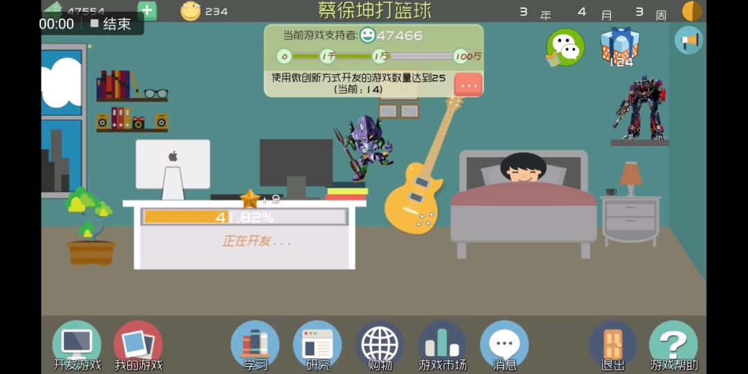 游戏做的非常好⊙▽⊙,顺便来一波新手攻略在晚自习偷偷玩的。😁1。在前期我推荐选择美术的程序还是策划反正就是会美术的,(前期点美术可以省两千块的外包,在前期不宜破产)2。在研究方面不要什么都点,可以通过消息来进行点,我玩到最后就只有解密和校园点满了。3。如果你选择美术那么前期就不用抄袭了,可以直接微创新,因为抄袭是给那些赶房租的玩家。美术点了以后你的下载量会提高所以不用抄袭。😀4。前期最好