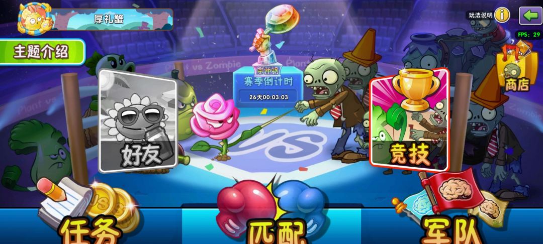 这是第一次玩双人对决,一天一夜直接上宗师。 我的僵尸都是本赛季获得,未氪金。 接下来直接讲打法 植物篇/防守篇: 1、小喷菇直接前压,保证前期输出,拉开差距,同时放一两个二爷或者冰鼬进行骚扰,对面防守起来立马停止,避免拖后发育节奏; 2、三线射手作为前期伤害补充,以及防止对面大规模冰鼬/鸡的突袭; 3、热辣海藻可以当盾牌的同时还可以作为输出保障,但是不要急着放,毕竟不便宜; 4、坚果作为50阳光的