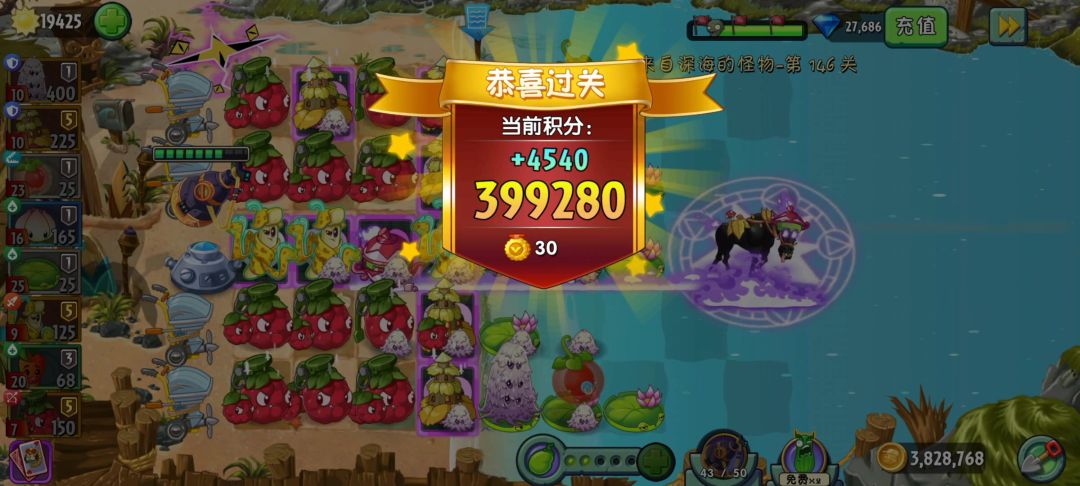 对于各位所表示的前期高阶生菜普攻会打出坤坤,而自己又没有街机魔豆等神器,这里提供一种思路[表情_送花]开局把12路的鸡贼换到一路(必须9列顶格海藻,把45路的鸡贼换到5路(这里如果3路有鸡贼就让他走到后排慢慢处理)然后就是拖字决,9列种树根(我称之为“土豆地雷“),,8种一排“坚果”即可。低阶的海藻记得带回血挂件。