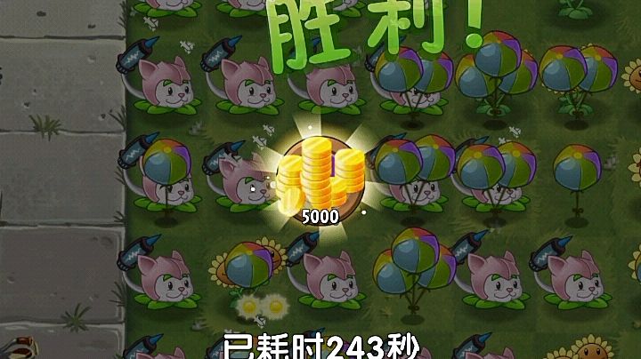 水草1阶只能拉1阶的僵尸(这关里就普僵,路障和铁桶),可以直接在第三列的蓝白格的活动平台上种猫尾(前两列到后面会塌掉),最后注意一下总阳光花费不要高于4500即可