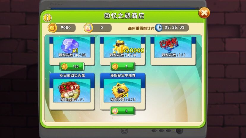 以下仅代表个人观点,有错请在评论区指出 一、回忆之旅适用植物 1.猫尾草:回忆之旅之神,毋庸置疑。 2.仙人掌:大部分关卡可用于速刷,也可以速杀精英僵尸。但有任务时不建议速刷。 3.双胞胎向日葵:最快产光植物,完成生产任务的主力。 4.樱桃炸弹:可以用于救急,或完成在X秒内击杀X个僵尸的任务。 5.火爆辣椒:同上 6.三叶草:可以吹走飞行僵尸,泡泡雨,配合迪斯科完成X秒内击杀X个僵尸的任务。 7.