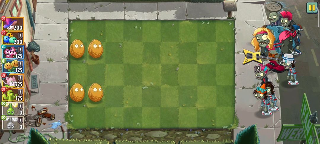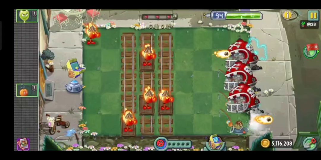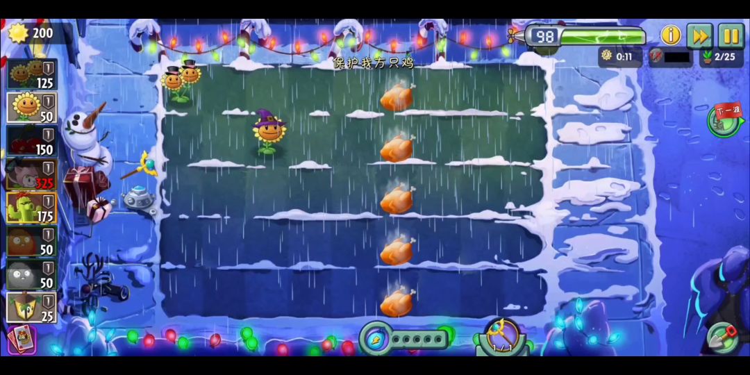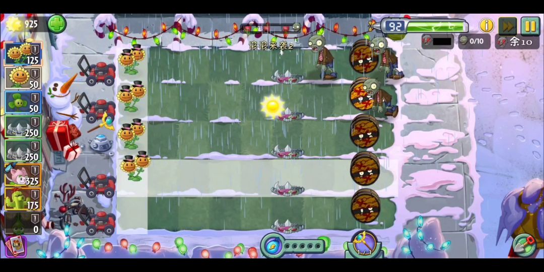 前面先种点向日葵猫度过前期吧,爆炸坚果放在前面防止骑士冲锋,后面一局6个豆,两棵仙人掌刷到结束,漏掉的冲过来交给坚果就好