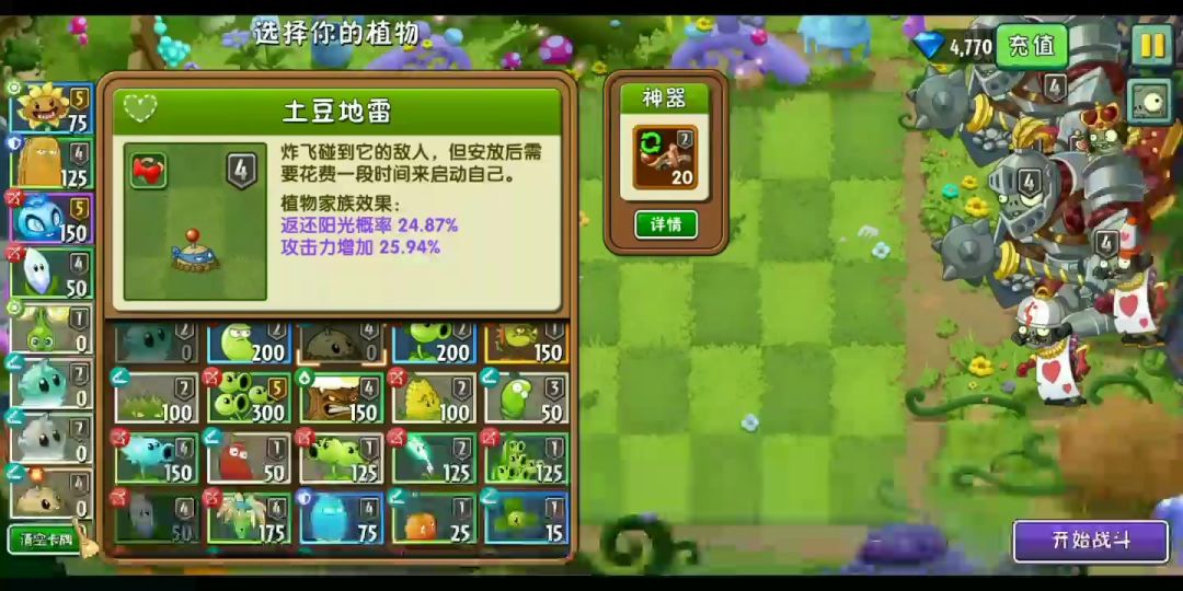 1.甜薯可以集中僵尸,配合灰烬植物、冰仙子等等,可以打出更高的伤害 2.法师类的僵尸一定要优先打,不然很容易破阵 3.天使星如果放在僵尸脚底开大,伤害非常大 4.近卫巨人的减伤特别恐怖,哪怕是在没有魔力护盾情况下,都能强行减75%的伤害,紫色魔力护盾+近卫本身的盾,能减94.75%以上。。。,但在硬控(如冻结、眩晕、击退状态、猫尾草的控制等)可以暂时破除,具有硬控效果的有冰冻生菜的冻结、眩晕枇杷,