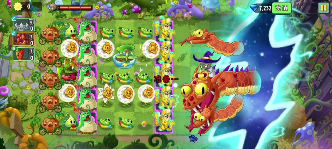 ❀通关条件❀ 零氪玩家全任务通关条件(满足其一): ▶小喷菇四阶带装扮,向日葵、樱桃炸弹等阶越高越好; ▶有街机神器、魔豆神器等神器,运气好也可以赌进化神器; ▶土豪黄瓜随便炸; ▶欧皇本皇赌坩埚出好货(不稳定); 本期攻略将着重介绍条件1小喷菇四阶带装扮打法。 ❀打法介绍❀ 迷雾起前: 多种植小喷菇和向日葵,最低保证小喷菇种满第九列,向日葵4株左右。 迷雾起后: 小喷菇优先种植第三列,其次第二第