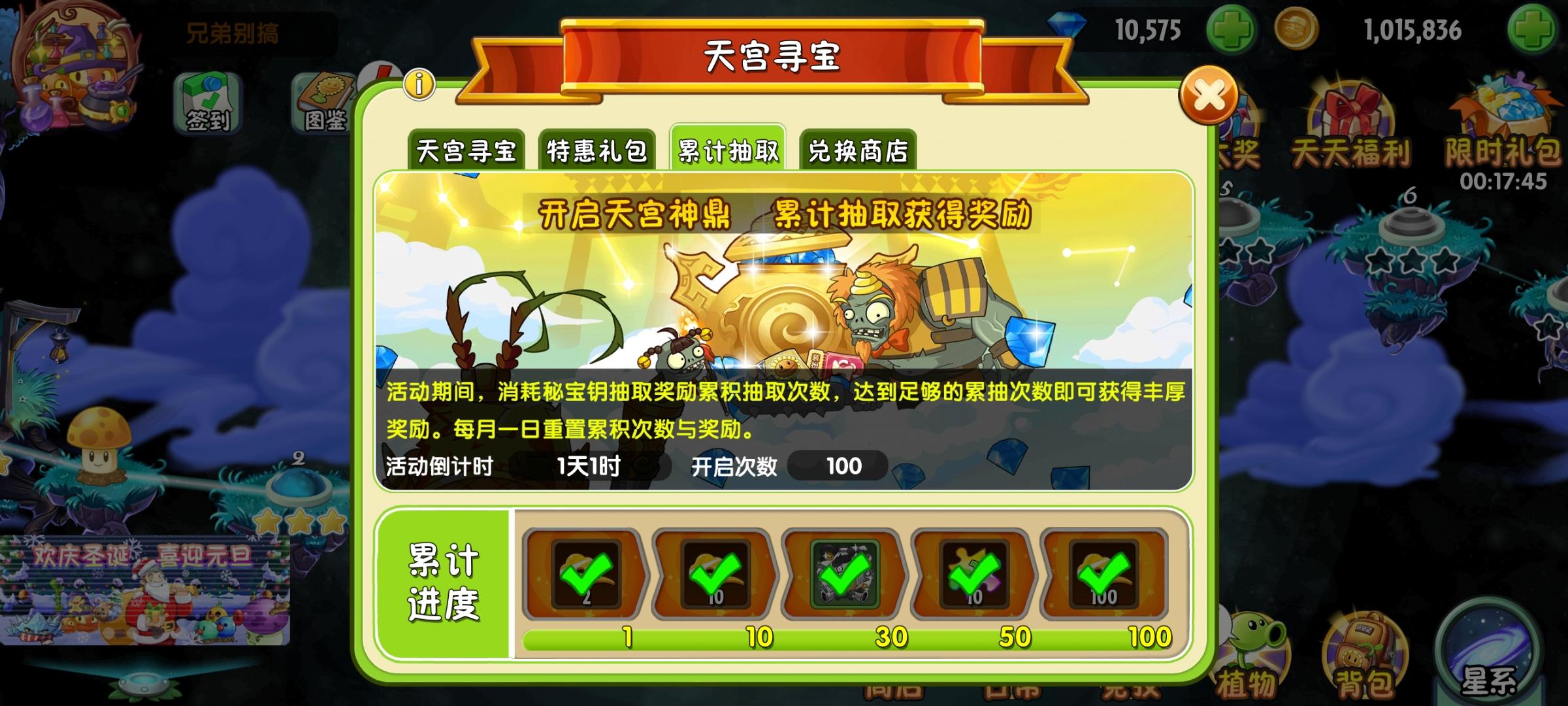 新手入坑玩植物大战僵尸2这一百多天,我回头来看发现自己踩了一堆坑😱。比如这个激光豆超级装扮,我当时只拿了半个😭,剩下那一半关卡打不过,也不想花钻石,就错过了。还有那个神器自选, 那玩意我记得要拉玩家,当时没有请别人弄,结果又错过了魔豆神器😭。还有今年不是出了个植物培育计划吗,我也没弄,当时以为不重要,结果又错过了聚能山竹😭,现在又后悔当初为什么没有弄山竹😡。还有当时还弄了个进阶书,但是我给电击蓝莓