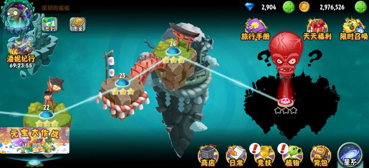 还剩巨浪,天空,摇滚,摩登,海底没解锁,冰河差个僵王,复兴还差几个传送锁定和僵王#游戏日常 #植物大战僵尸2 #植物大战僵尸2日常