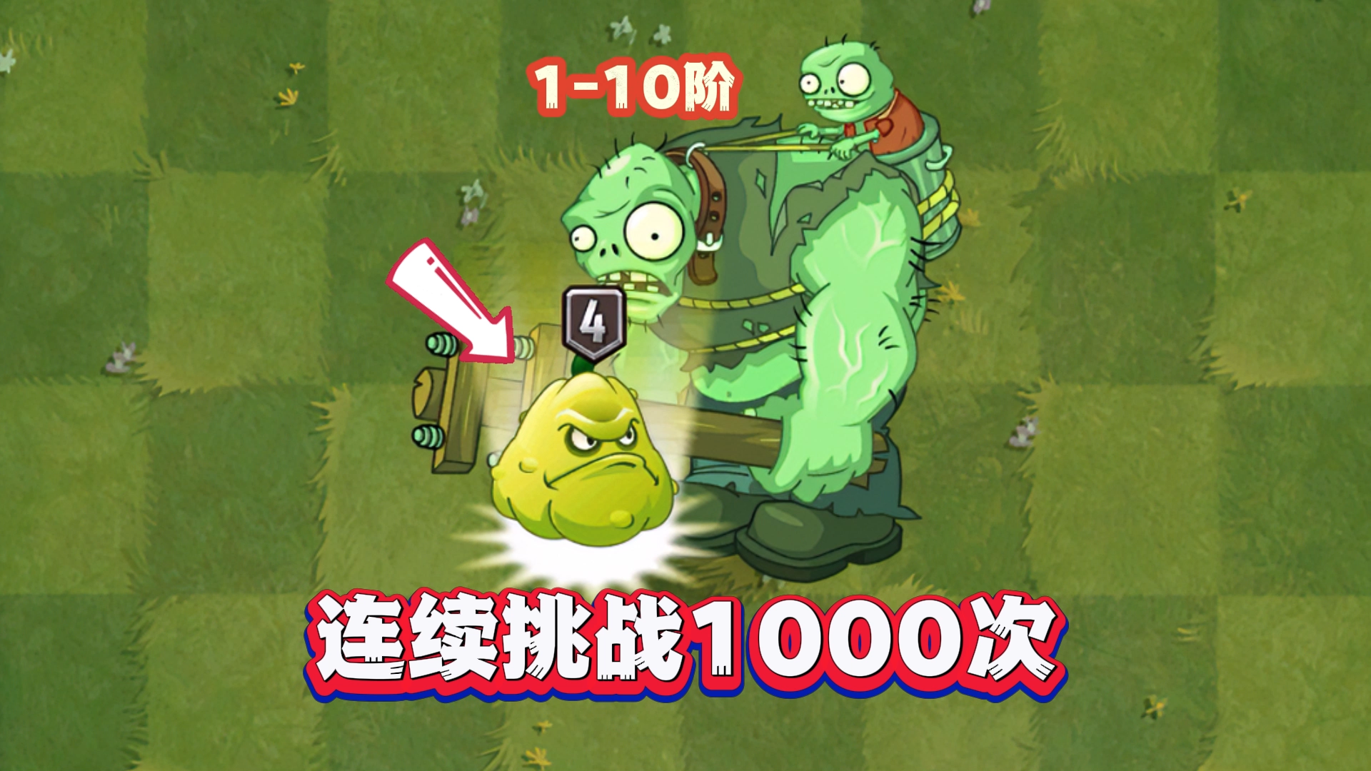 植物大战僵尸:连续挑战1000次,窝瓜能否击败10阶巨人?