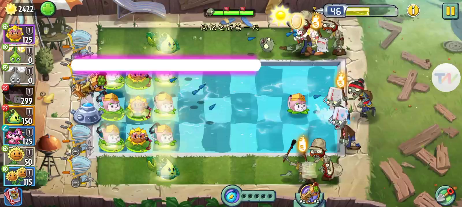 今天我玩回忆之旅普通第一关结果不知道为什么我给向日葵歌手放大招之后,然后场上不知道从哪射出来猫尾草大招的光柱,我再想想之前的阳光炸弹,怎么也炸不了的一大堆的bug,拓维,你看到要不然回一句?