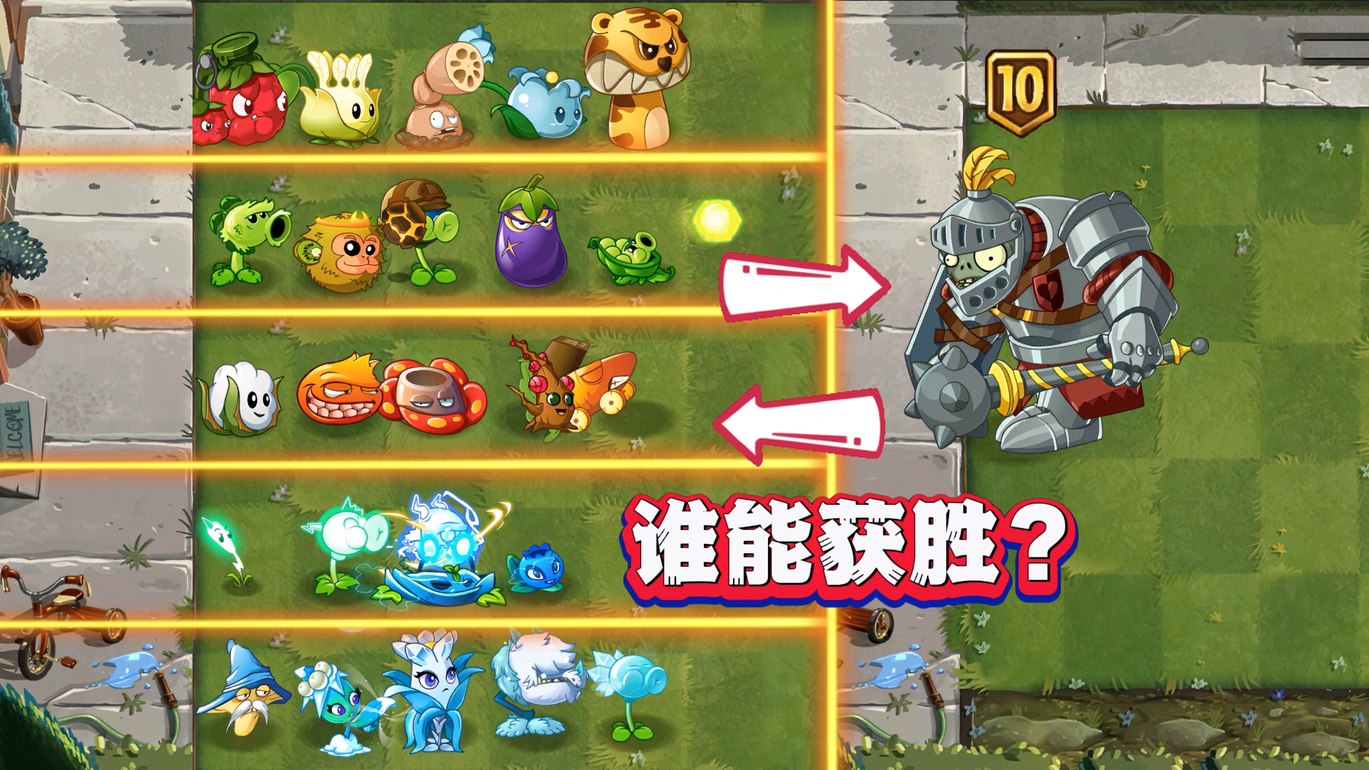 植物大战僵尸:五组满阶植物VS十阶近卫巨人,谁能笑到最后?