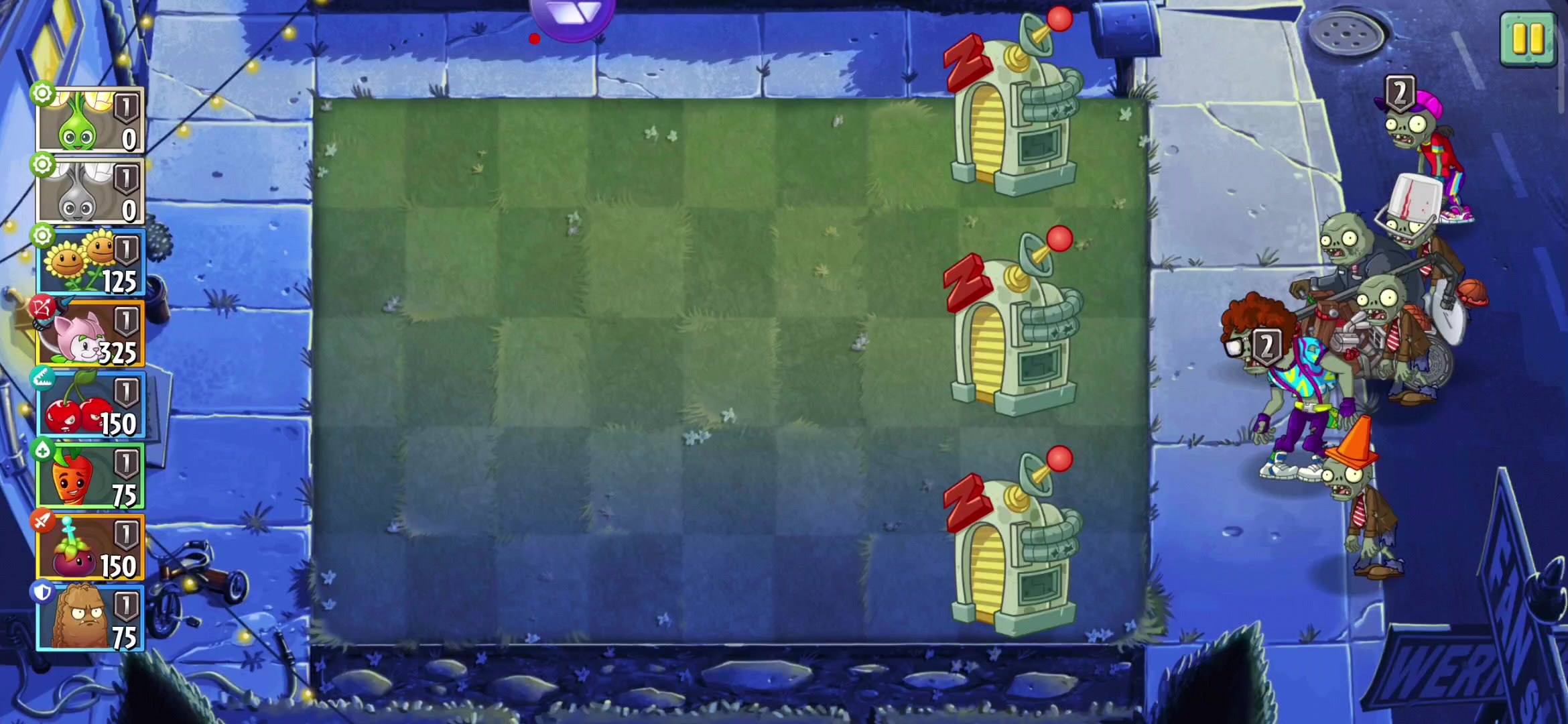 可以把南瓜换成路灯花以防有盗贼进入隐身后无法击杀,这关精英Boss是闪电枪,只管猫尾输出即可,有豆后给豆仙人掌快速过波